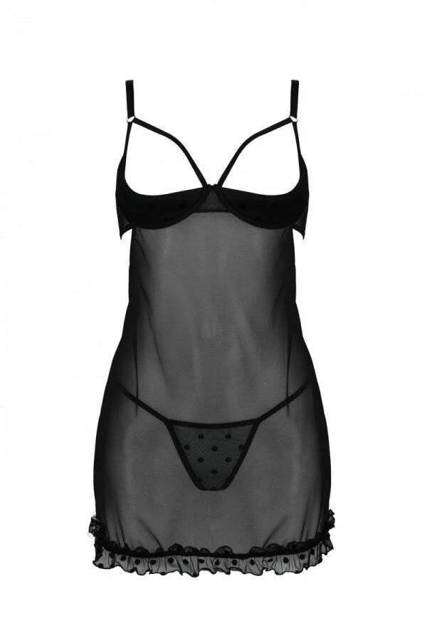 Рекомендуємо купити еротичний пеньюар Passion MARINA CHEMISE з відкритим бра — легкий і неймовірно сексуальний. Зверніть увагу на легкий крій, ніжний прозорий матеріал і довжину, що лише прикриває попку. Але, звичайно, родзинка цієї цікавої білизни — у відкритих чашках бра. Посилені кісточками, вони підтримують і підкреслюють груди, акцентуючи на них увагу.