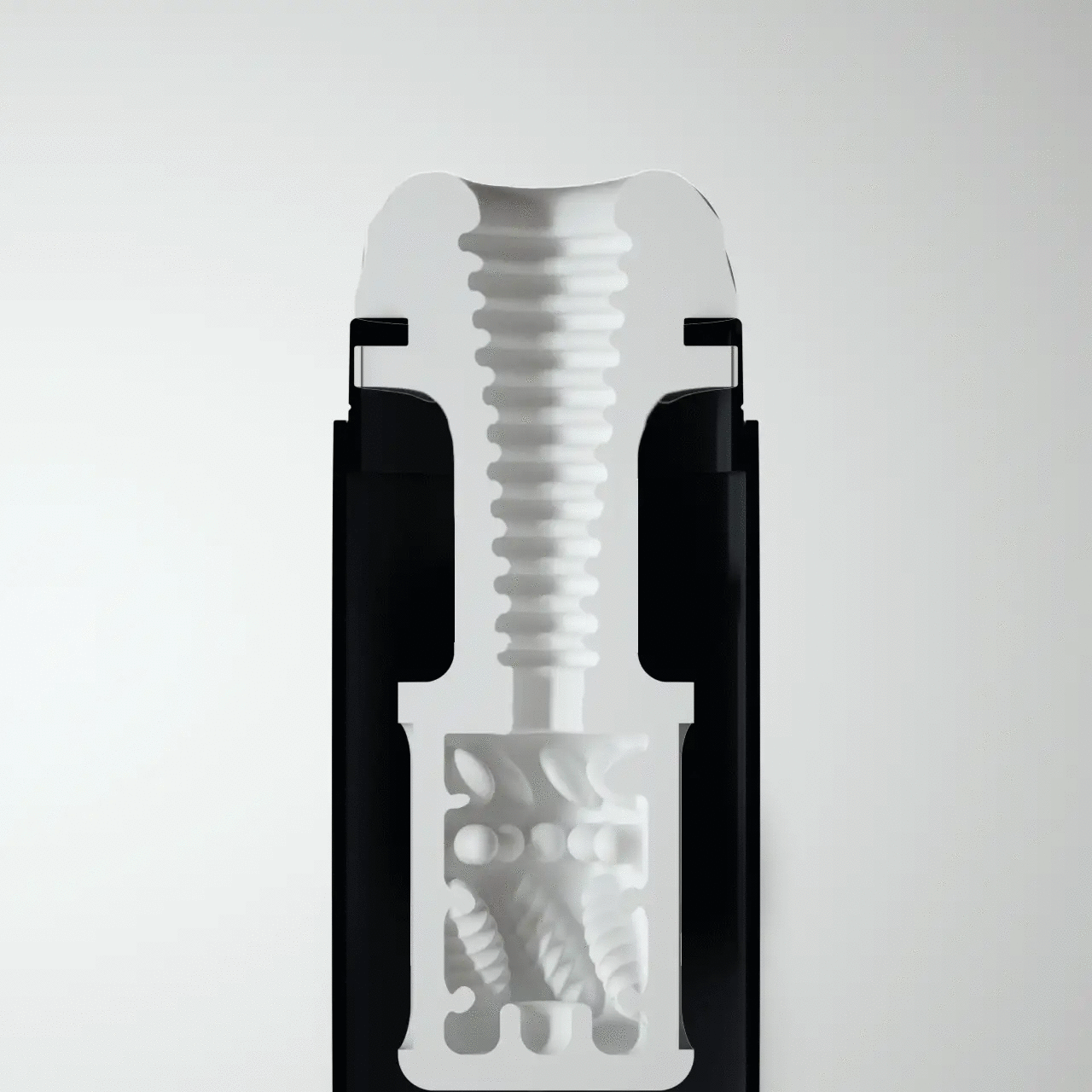 Перше, про що ми поговоримо – це про дизайн нового мастурбатора від Сваком. Він зазнав змін, і тепер це просто футуристична колба у темному чорному відтінку. Вона ніяк не натякає на те, що насправді може ця іграшка, а тому ви можете з усією сміливістю залишати її на ліжку або серед купи подушок – ніхто навіть не здогадається.