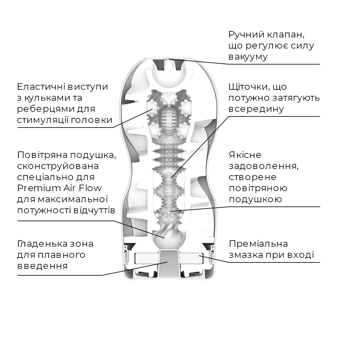 Задоволення преміум-класу, яке неможливо порівняти з тим, що ви отримували раніше – це про іграшку Тенга Преміум Ейр Флоу Кап, яка з'явилася в асортименті нашого секс-шопу BrokenSofa.