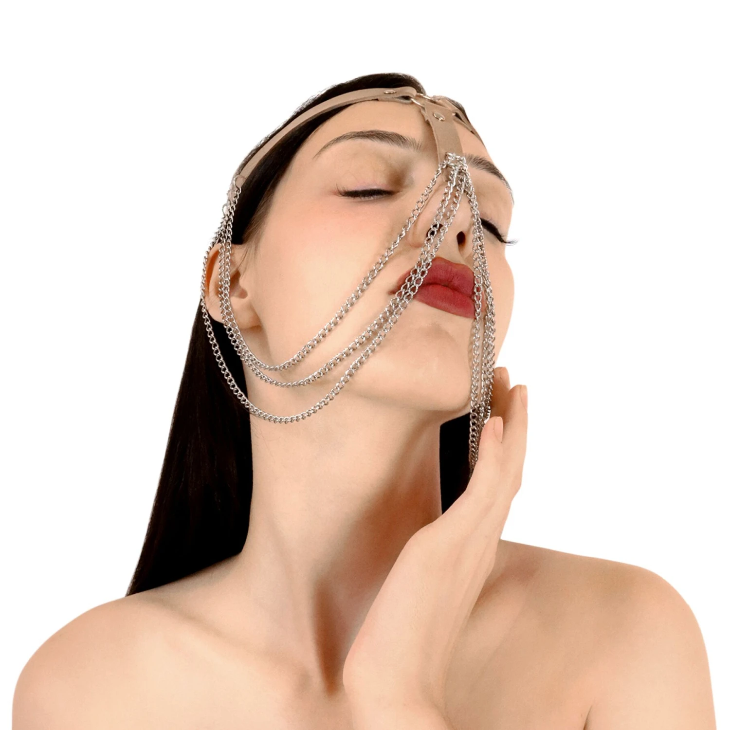 Металлические цепочки, блестящие и эффектно выглядящие, скрывают лицо, создавая легкую интригу, и могут служить как выразительное украшающее дополнение, подчеркивая вашу уникальность и женственность. Этот аксессуар идеально подходит для тех, кто желает добавить загадочности в свой образ. Благодаря своей универсальности, это украшение может быть использовано в различных обстановках, придавая вашему облику неповторимую красоту и привлекая внимание своей сексуальной привлекательностью.