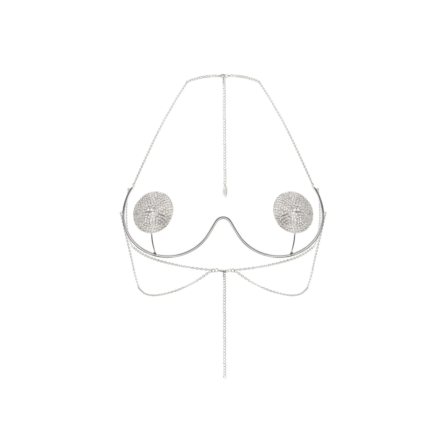 Эта украшение Obsessive Kisselie — настоящий арт-объект для тела, который стирает грань между бельём и ювелирным изделием. Оно создано, чтобы превратить декольте в главный акцент образа и притягивать взгляды к самым чувственным зонам.
