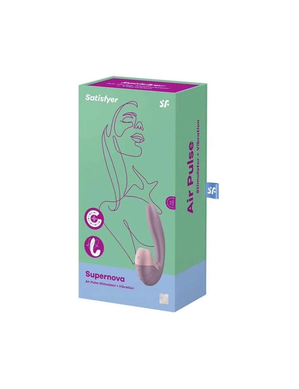 Вакуумный вибратор Satisfyer Supernova специально создан для комфортных и нежных ласк. Ствол его слегка загнут для стимуляции точки G, а широкий раструб захватывает дополнительную зону вокруг клитора для вакуумной стимуляции.