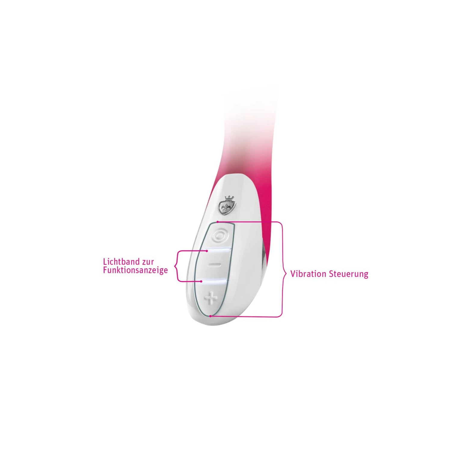 Дизайн: эргономичный корпус ярко-розового цвета с белой ручкой, на которой расположена удобная панель управления с подсветкой.