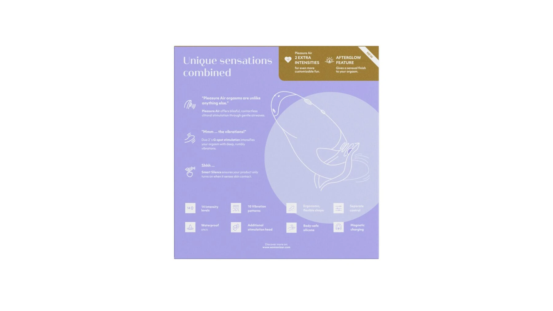 К преимуществам Womanizer Duo 2 можно отнести наличие двух моторчиков, которые управляются отдельно, а потому обладают достаточным уровнем мощности, чтобы обеспечить интенсивную стимуляцию до кульминации.